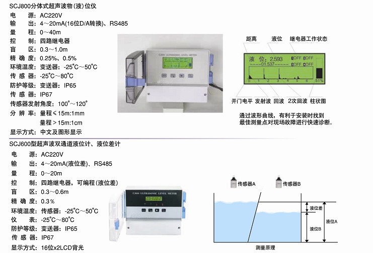 SCJ400、 SCJ400A分体式超声波物(液)位计